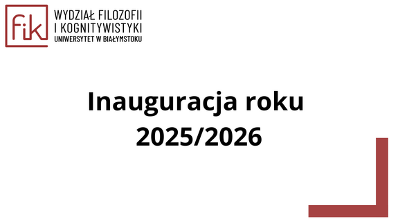 Dziekan i Rada Wydziału Filozofii i Kognitywistyki Uniwersytetu w Białymstoku mają zaszczyt zaprosić na uroczystą inaugurację roku akademickiego 2025/2026, która odbędzie się 6 października 2025 r. o godz. 11.30 w Sali nr 94 przy Placu Niezależnego Zrzeszenia Studentów 1