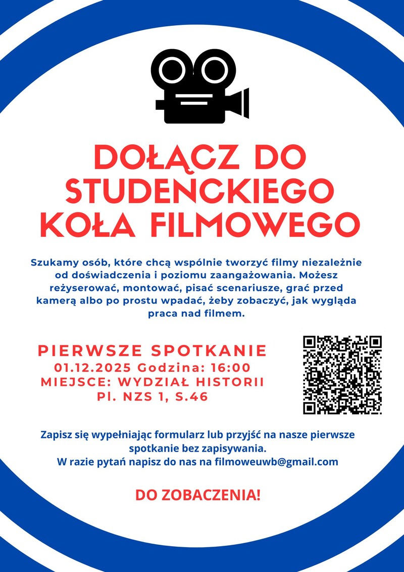 Filmy to Twoja pasja❓📽️🎬A może chcesz reżyserować, montować, pisać scenariusze, grać przed kamerą❓ Dołącz do Studenckiego Koła Filmowego❗🙂